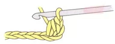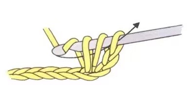 • Pull the yarn through the chain (three loops on the hook).